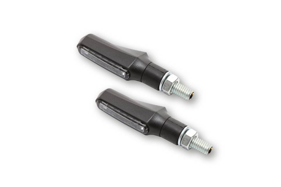 Modern designed turn signal with the newest light technology in a sturdy plastic housing in black, with rubber stem and a smoke lens is E-marked for front and tail app.