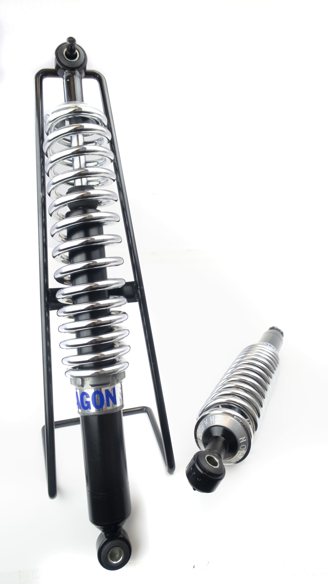 Ammortizzatori Progressivi Hagon. I migliori in assoluto, disponibili con molle nere o cromate. Questi ammortizzatori extra lunghi sono spesso utilizzati sui modelli BMW serie R modificati con sella monoposto.