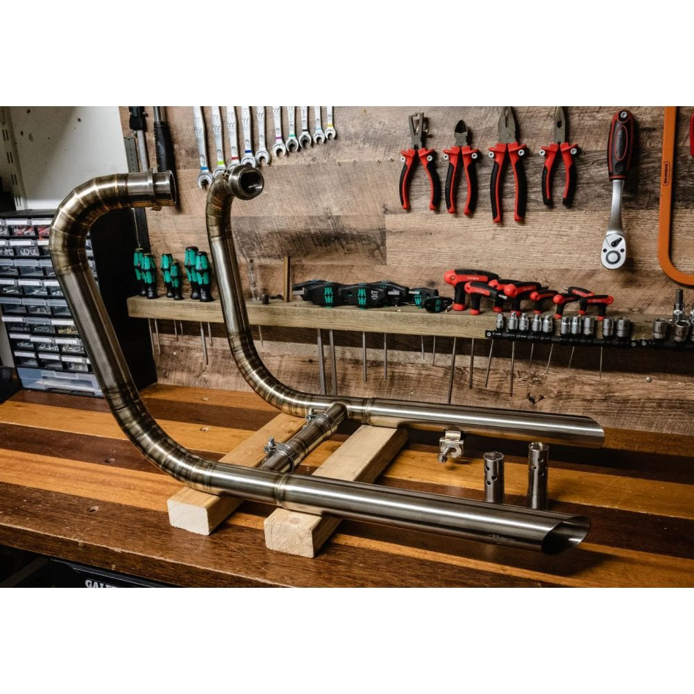 Il sistema di scarico Motone Nautilus è un sistema di scarico completo con tutti i tubi e i raccordi. Ciò significa che non sono necessari x-pipe o parti aggiuntive per il montaggio. I tubi di scarico sono costruiti con un sistema di tagli a torta saldati a tig in acciaio inox serie 300. Viene fornito con un connettore h-pipe che passa sotto il fondo della moto per una coppia completa. I deflettori sono inclusi nel corpo principale dei tubi per modulare il suono. Il sistema di scarico è dotato di una serie di dB killer in linea che si possono lasciare o rimuovere a seconda del livello di modulazione del suono che si preferisce.