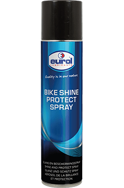Lo spray protettivo Eurol Bike Shine Protect pulisce vernice, cromature e alluminio. Crea una pellicola protettiva e dona rapidamente e facilmente una finitura lucida. Adatto a biciclette, motociclette, barche e auto.