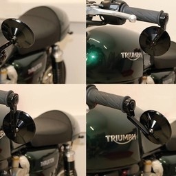 Handlebar end mirror in a classic style with a round head made of high-gloss, black anodized aluminium for universal usage. Fits on 1 inch (25,4 mm) and 7/8 inch (22 mm) handlebars. The second generation has a shorter stem and is newly shaped with three air slots.