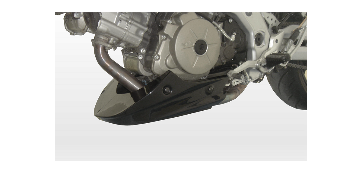 Engine Spoiler for Aprilia Dorsoduro 750. This Engine Spoiler protects against mud and other things that would otherwise get on the engine or the exhaust.