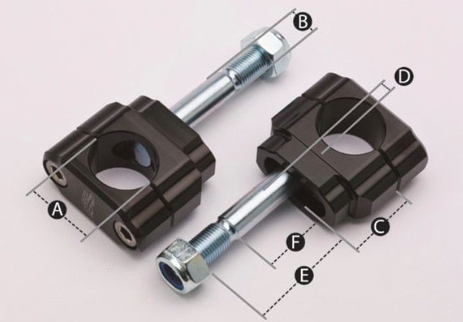Renthal Bar Mounts 28.6 mm No Offset Risers. The risers are suitable for bars with a diameter of 1 1/8" or 28.6 mm and height of 32 mm.