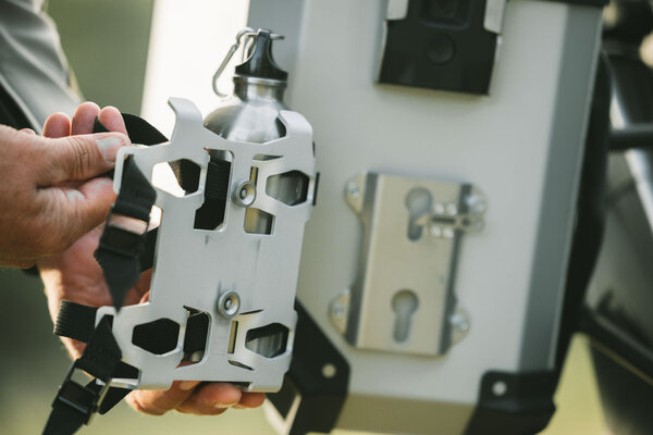 SW-Motech Trax Bottle Set of 2 for Trax Accessory Mount è la soluzione migliore per trasportare in sicurezza liquidi aggiuntivi come acqua o benzina sulla valigia in alluminio TRAX e funziona bene per i viaggi fuoristrada.