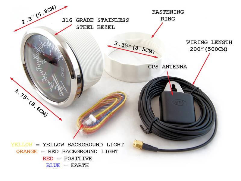 The speedometer itself mounts into the dash of your vehicle by cutting an 85 mm hole, inserting it, then screwing the fastening ring onto the back.