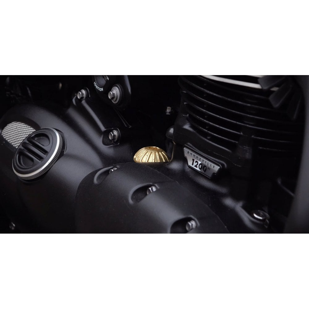 Il tappo di riempimento dell'olio motore di ispirazione vintage Roswell Brass, dotato di una guarnizione O-Ring resistente all'olio.