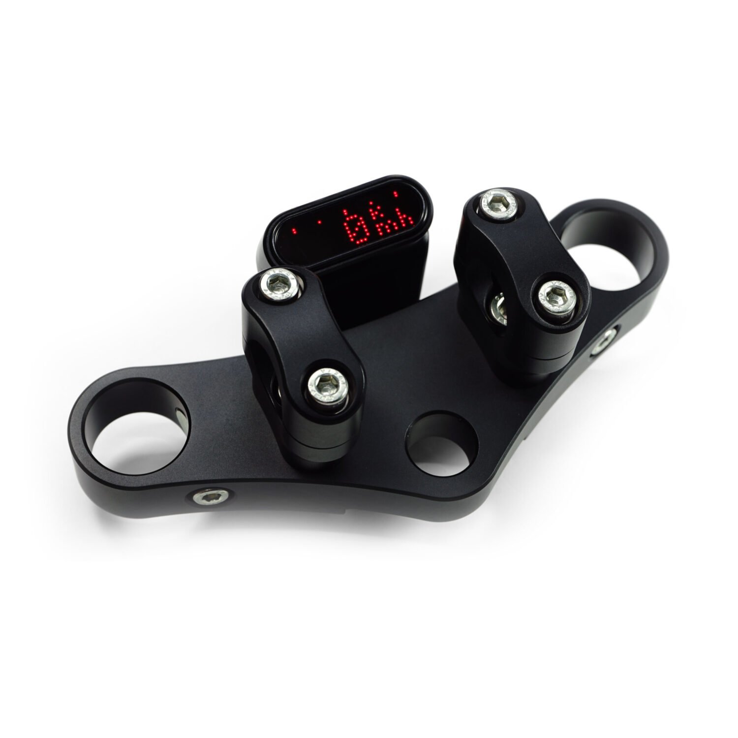 At the bottom of the triple tree clamp there are three M8 holes, which can be used to mount a speedometer or any other parts you wish to have installed. Ignition lock or a bracket for the choke, for example.