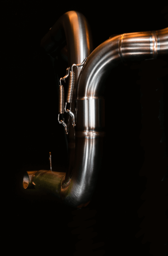 Gli scarichi sono realizzati in acciaio inossidabile. I tubi hanno un diametro di 44,5 mm e il silenziatore si adatta a una flangia di 50,8 mm. Lo scarico verrà consegnato con una marmitta incorporata