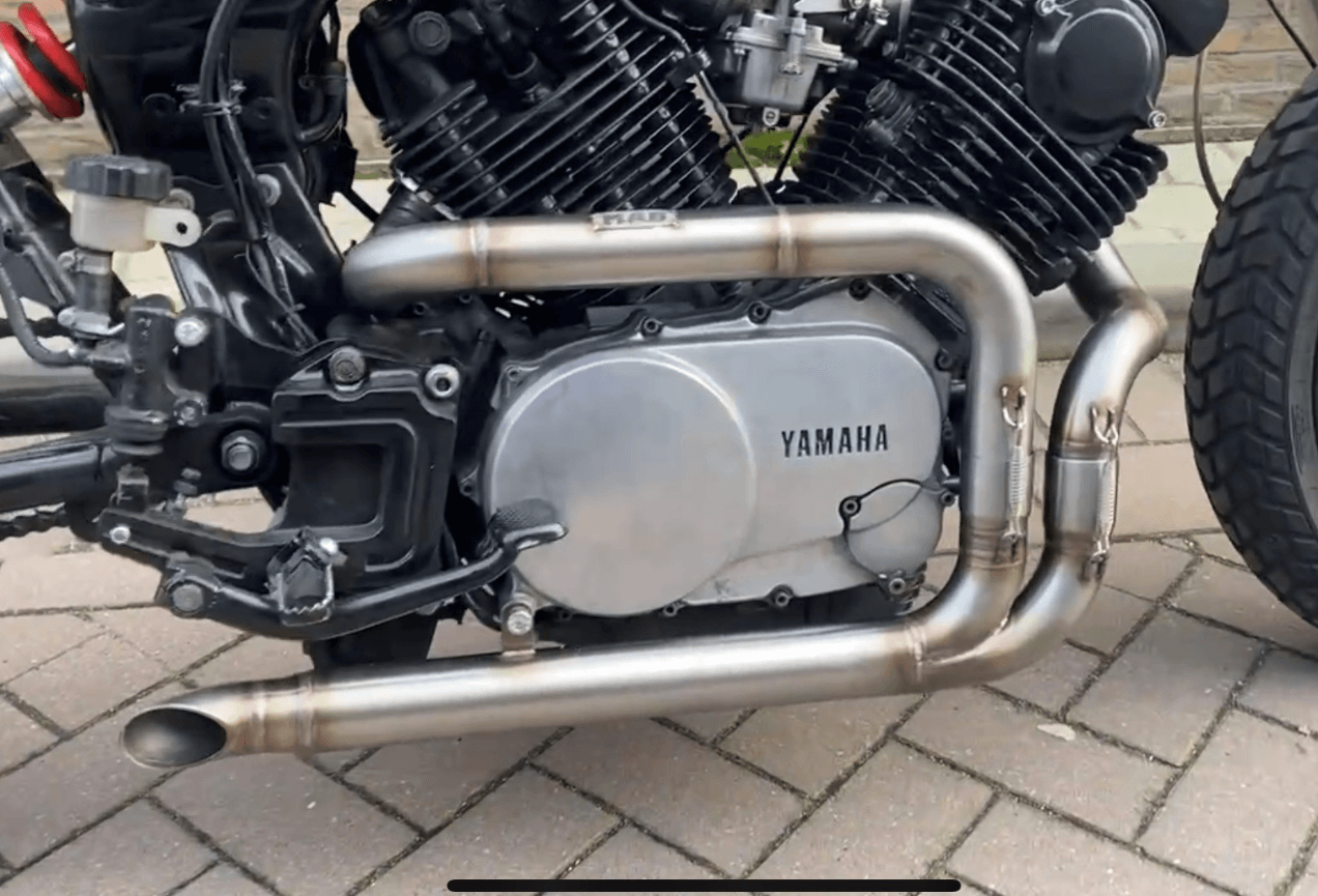 Questo scarico è realizzato appositamente per la serie Yamaha XV. Abbiamo montato lo scarico sullo scrambler Moto Adonis. Una bella combinazione. Questa bici ha ricevuto molte risposte positive in più spettacoli di biciclette.