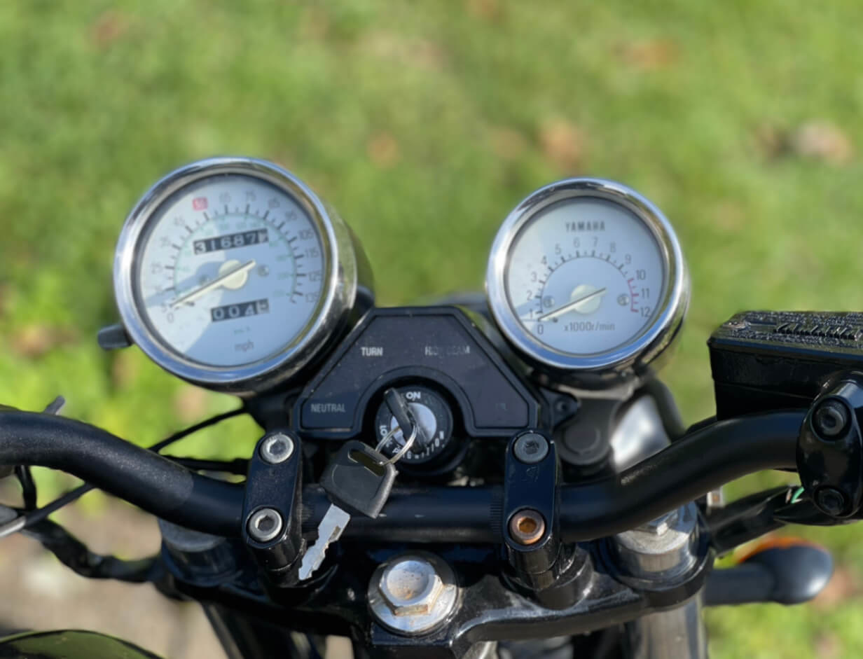 Recentemente ha avuto un tagliando completo presso il negozio di moto locale, olio, candele, nuovo cavo della frizione, punti di articolazione lubrificati, valvole regolate e carburatore sincronizzato.