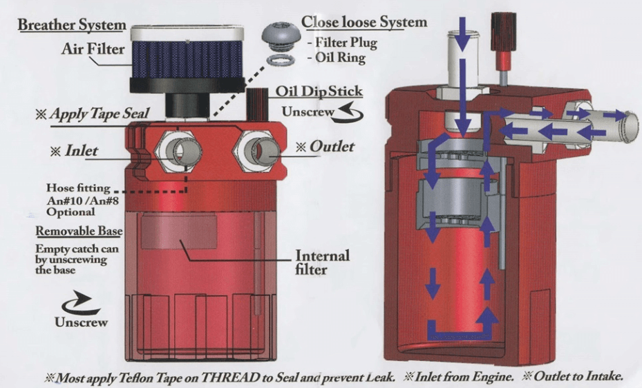 De opvangtank zorgt ervoor dat vuil en olie binnenin uw motor uit uw inlaatsysteem komen