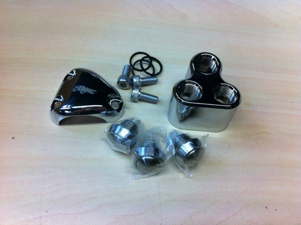 3 Button Schakelaar 25.4MM of 1" Chrome. Deze schakelaar past perfect om een 25.4mm stuur en heeft 3 knoppen. Deze kun je uitstekend gebruiken in combinatie met de m-Unit, maar dat hoeft natuurlijk niet.
