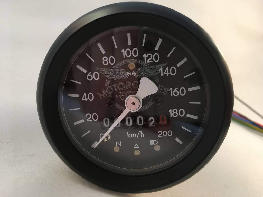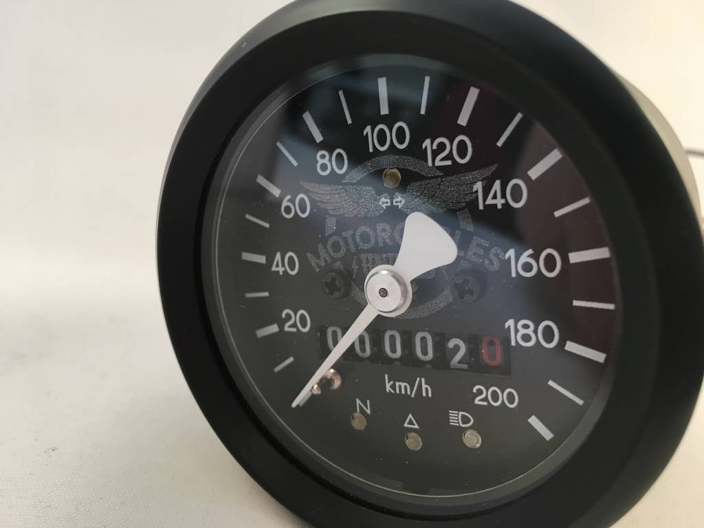 De 4 LED functielichtjes maken de teller compleet. Gecombineerd met een klassieke uitstraling maakt dit de ideale teller voor bijvoorbeeld je BMW R80.