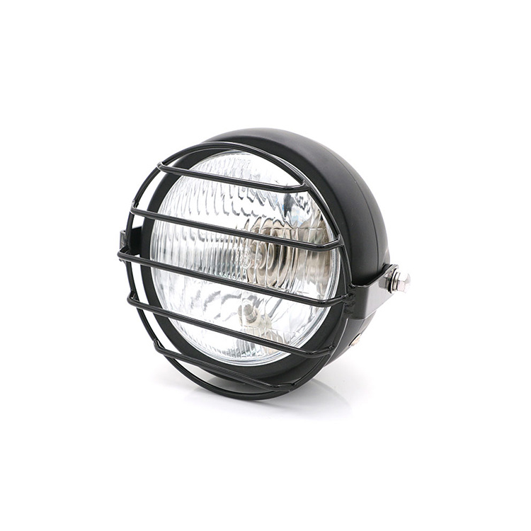 De koplamp heeft een zijmontage en een metalen behuizing.