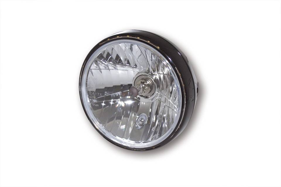 7" Clear Black Gloss Koplamp RENO 2 met LED rand verlichting!
