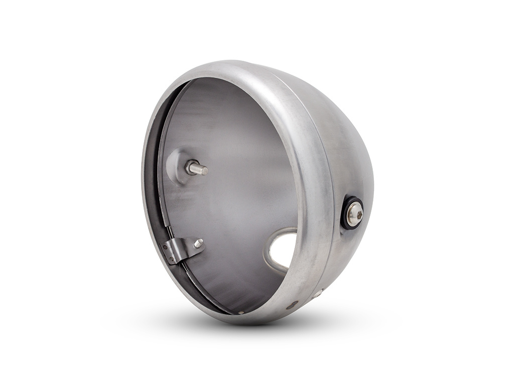7 inch onbewerkte ongelakte metalen koplampbehuizing + lunette. Hoogwaardige onbewerkte ongelakte koplamp behuizing set voor doe-het-zelf-toepassingen. Klaar om te spuiten naar de kleur van je keuze of ga voor de Patina look.