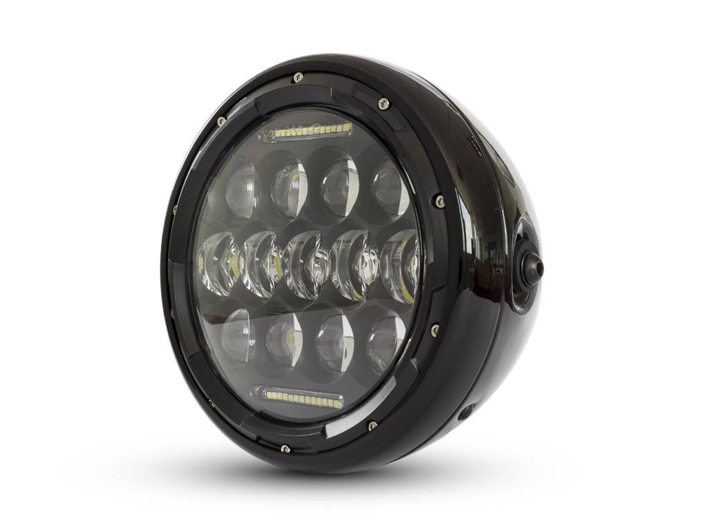 7" Multi Projector LED Koplamp Black. Dit is een zeer "premium" koplamp die je niet snel ergens anders gaat zien. De uitstraling is uniek en de kwaliteit is nagenoeg perfect! Deze koplamp onderscheid zich door de 13 projector LED's met dimlicht en groot licht.