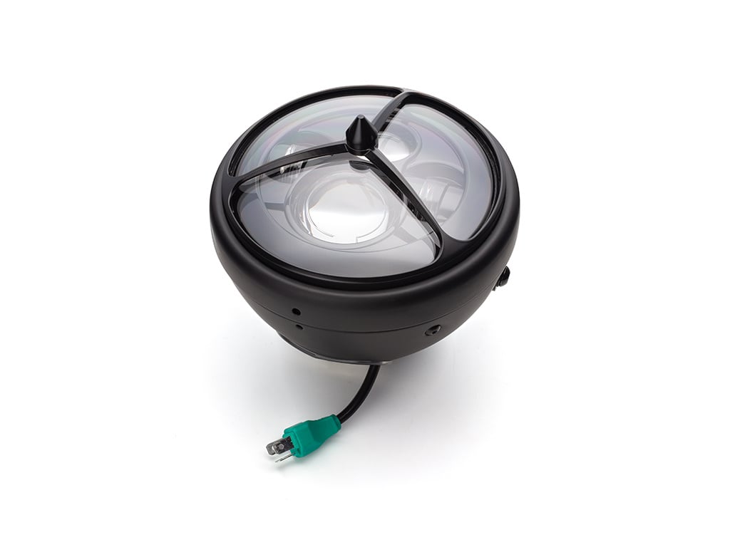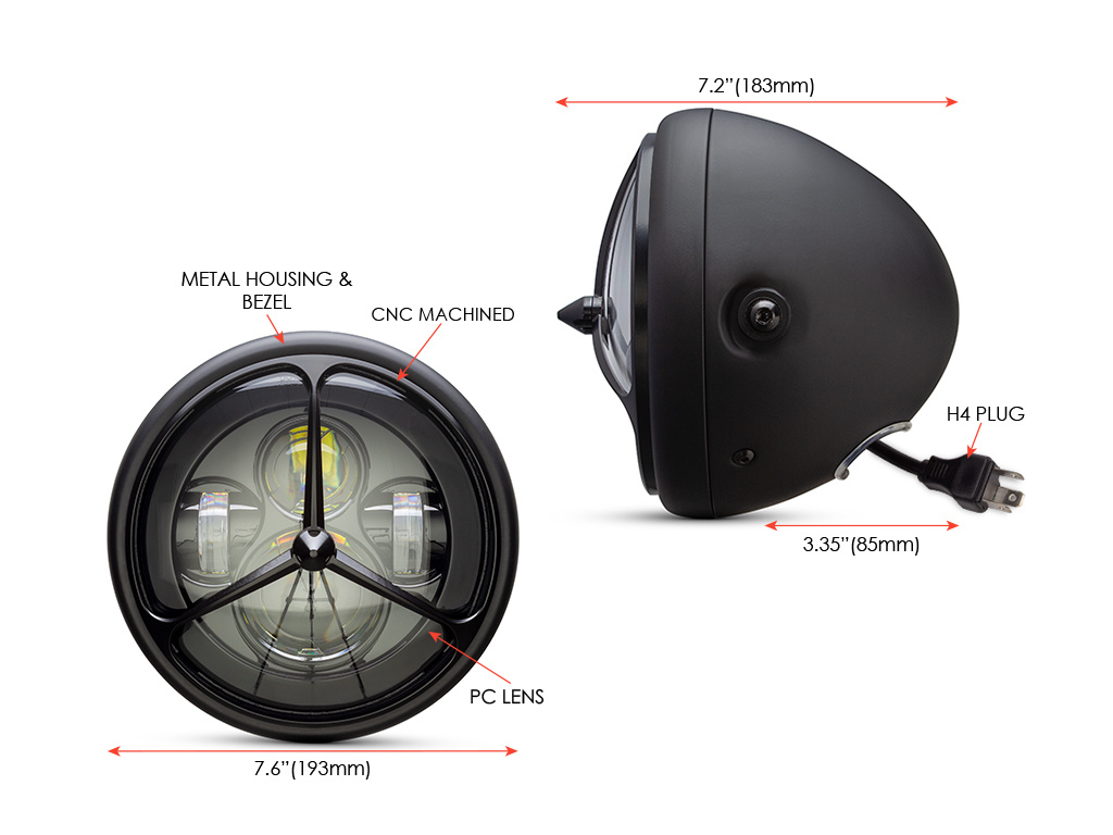 7 "Trias Design Multi LED-projector koplamp. Op zoek naar iets cools? Nou, deze unieke koplamp is van een hoge standaard en is super helder. Hij heeft een klassieke stijl met zijmontage en is voorzien van een multi-projector LED-insert en een CNC-gefreesde Cross Hairs Grill design insert.
