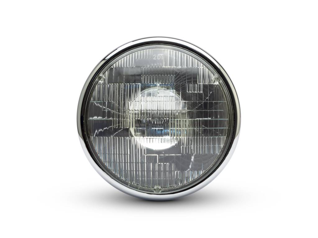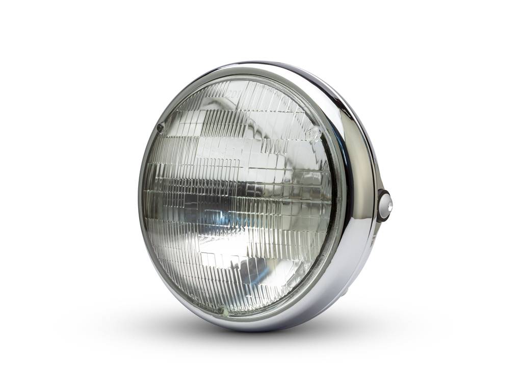 7 "Chrome Shorty metalen koplamp - 12v / 55w sealed beam