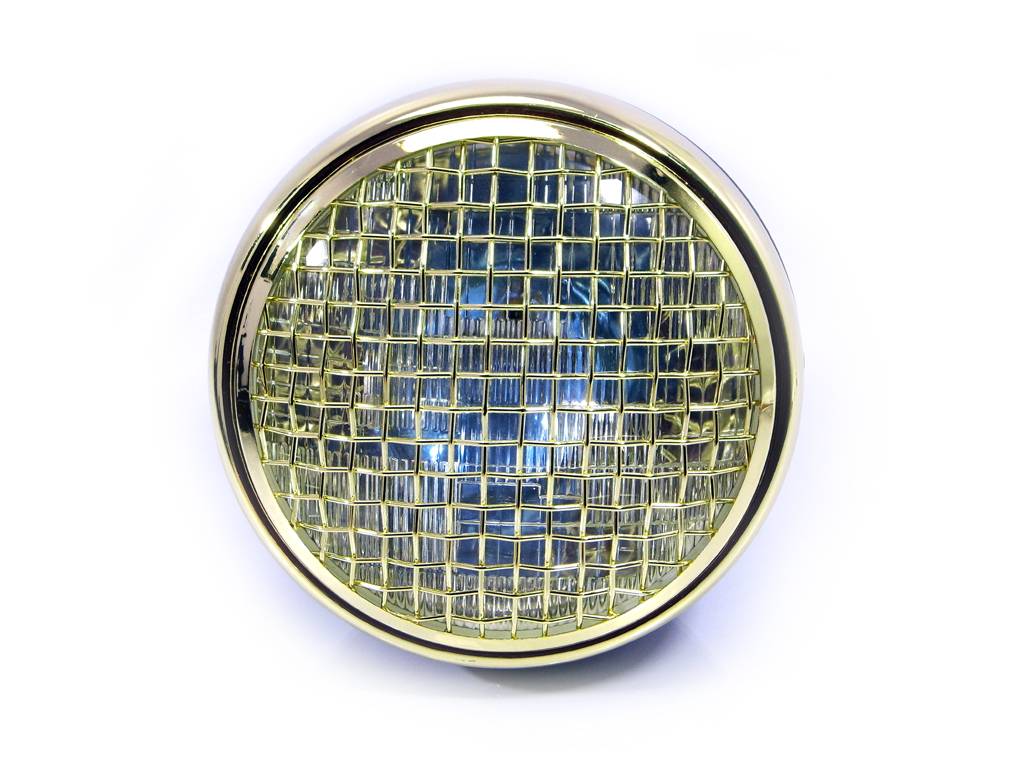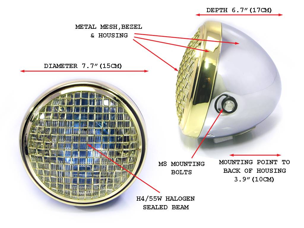 7 " Scrambler Koplamp Brass & Chrome Extra Groot. Zeldzaam grote lamp die perfect op de wat grotere scrambler motorfiets past door z'n forse diameter. De behuizing is metaal en er is een H4 lamp in!