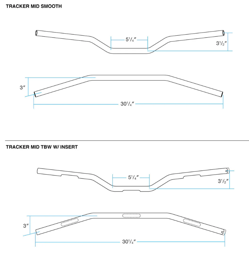 Met een backsweep die minder ernstig is dan de meeste standaard sturen, is elke Tracker in ons assortiment een geweldige vervanging voor rijders die het kruiwagengevoel van het Originele stuur willen laten varen. Wanneer mensen ons om advies vragen over welke Tracker ze moeten paren met een bepaalde Murdock-riser (98-7116 / 98-1726), raden we aan om een combo te bouwen die je handen iets onder of zelfs met de hoogte van je schouders plaatst als je comfortabel op je motor zit.