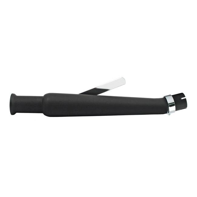Black Trumpet Demper Rechts. Mooie stoere en oldskool demper die zeker mooi op uw Cafe Racer zal staan. Lekker diep en stevig geluid en een goede kwaliteit.