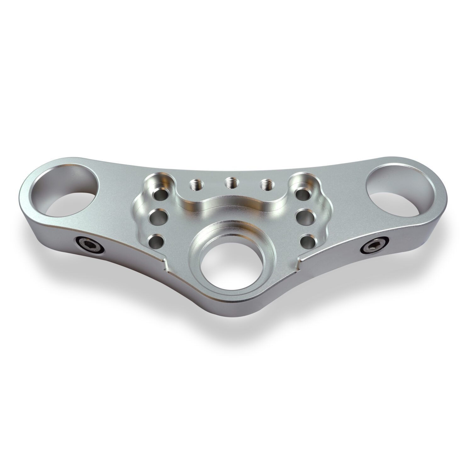Deze hoogwaardige Tripleclamp is CNC-gefreesd uit een stuk aluminium van vliegtuigkwaliteit. Na het bewerken ondergaat de Triple Treeclamp een reeks oppervlaktebehandelingsstappen inclusief anodiseren. Het resultaat is een gladde satijnen afwerking die zowel kras- als weersbestendig is. Perfect voor een café racer motorfiets build of een andere custom build, waar je clip-ons wilt gebruiken.