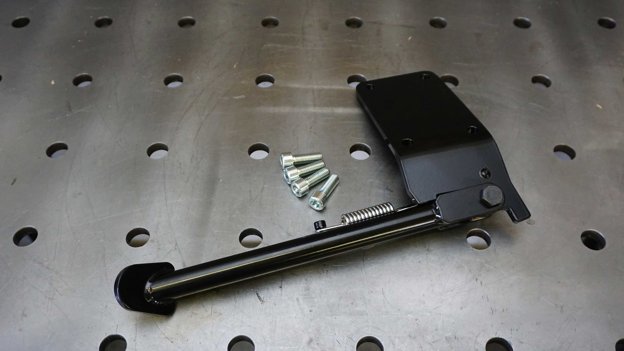 De zijstandaard is op de originele bevestigingspunten gemonteerd, hierdoor past de originele middenstandaard niet meer na montage van dit onderdeel.