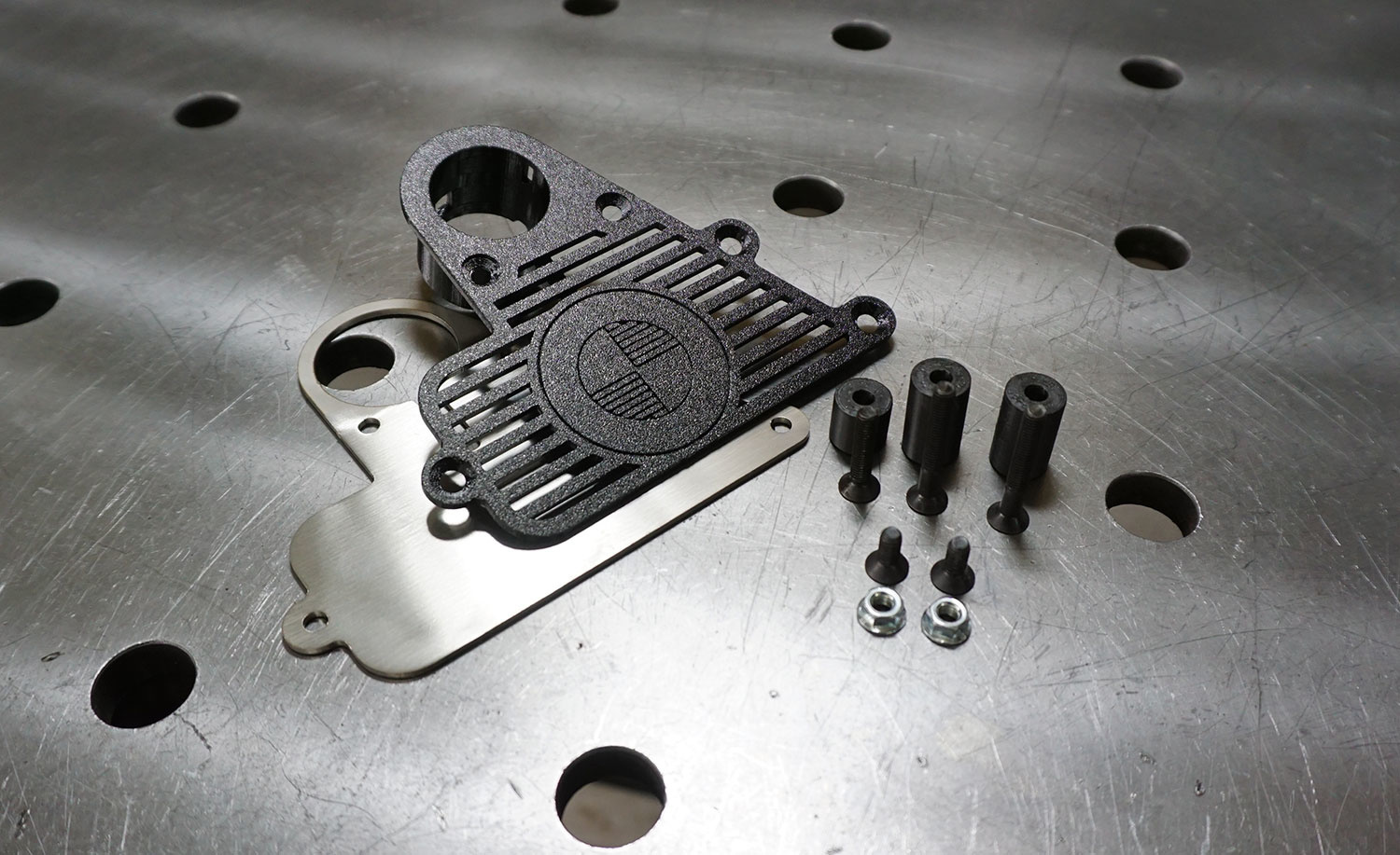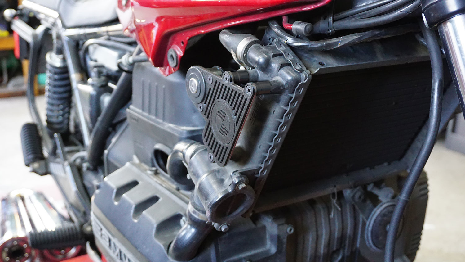 Deze beugel is gemaakt om het originele contactslot van de K75 en K100 te monteren aan de radiator. De achterkant is gemaakt van geborsteld RVS om een mooi contrast te krijgen met de zwarte voorkant.