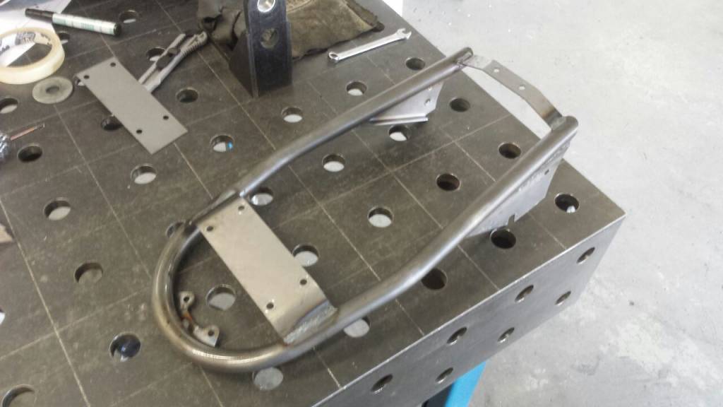 Dit frame is anders dan de meeste subframes die je ziet bij een BMW R80 Cafe Racer of Brat. Niet die "driehoek", maar een zwevend frame met de nodige steuntjes.