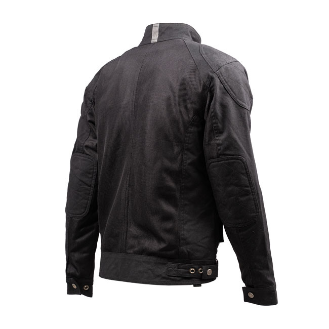 De By City Teneree Venty IV Jacket in Black combineert geperforeerde mesh stof en gewaxt katoen voor ademend vermogen en duurzaamheid. Met zijn verstelbare pasvorm, verwijderbare flexishock-beschermingen en EN17092-4:2020 A-certificering zorgt hij voor zowel comfort als veiligheid tijdens het rijden.