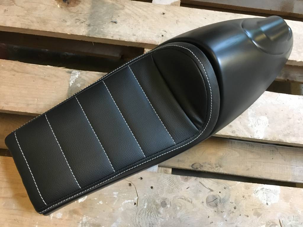 Cafe Racer Seat Tuck 'N Roll Long Zwart Type 19. Erg veelzijdige cafe racer seat. Door de grote lengte is het zitje goed te gebruiken bij motorfietsen die wat meer lengte hebben. Denk hierbij aan BMW's of de 750+ cc Japanse motorfietsen.