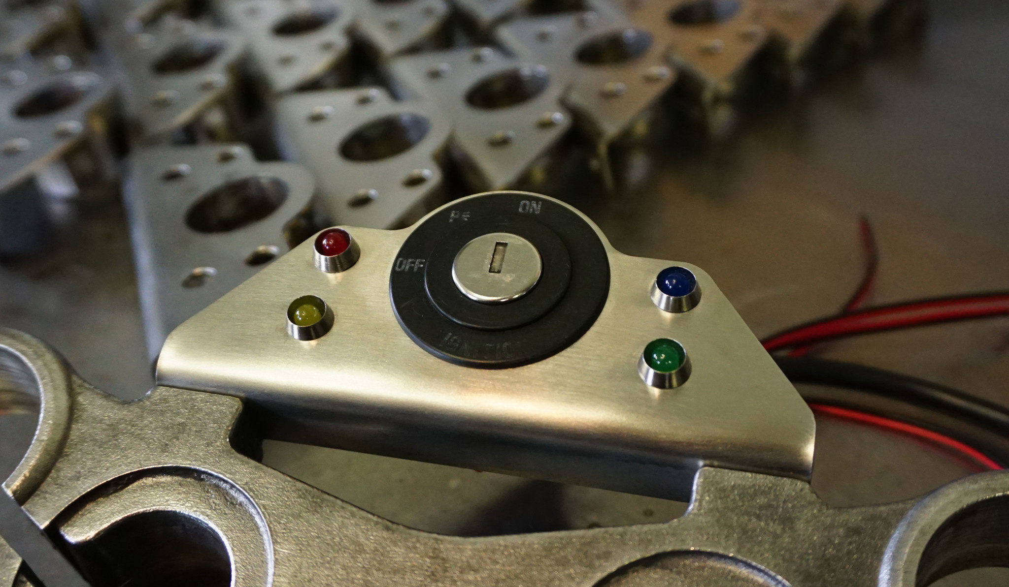 Dit is een beugel die u kunt gebruiken om de standaard contactschakelaar op de standaard drievoudige kroonplaat te monteren. Dit onderdeel kan worden gebruikt op de BMW K100 en BMW K75. Deze set bevat vier indicatielampjes. U kunt ze aansluiten op de functie die u wenst. Het is helemaal aan u. Dit product is ontworpen voor de BMW K-serie, zodat u van uw Café Racer-project een succes kunt maken!