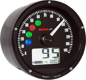 Productinformatie "Snelheidsmeter D75 met zwarte wijzerplaat, zwart oppervlak en zwarte rand 0-240 km / h of"