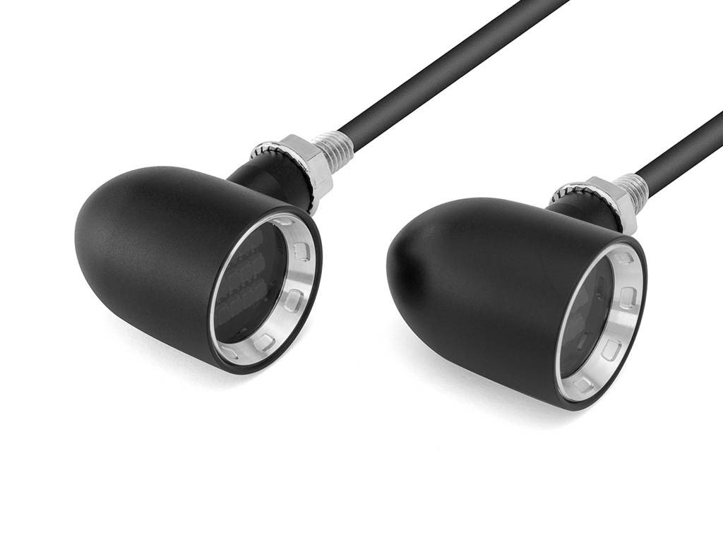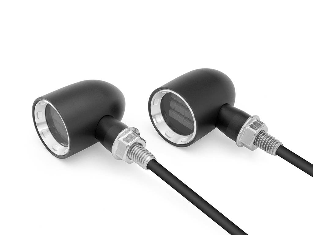 Deze hoogwaardige knipperlichten worden vervaardigd uit massief 6061 billet-aluminium. Intern zijn ze voorzien van superintensieve super heldere LED's met een smoked lens. Ze zijn super klein en super helder.