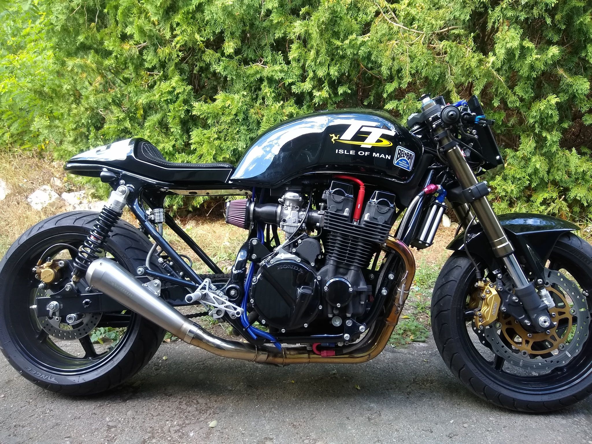 - Op een CB 750 kunt u het middenstuk van het frame verwijderen met behulp van rubberen 2-in-1-adapters.