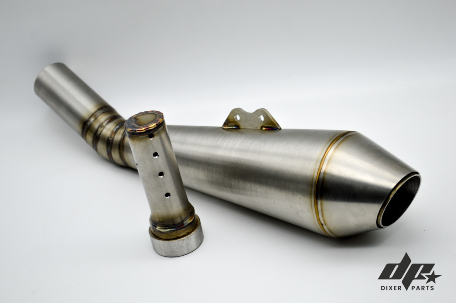 Uitlaat voorbereid voor montage met onze achtersets: