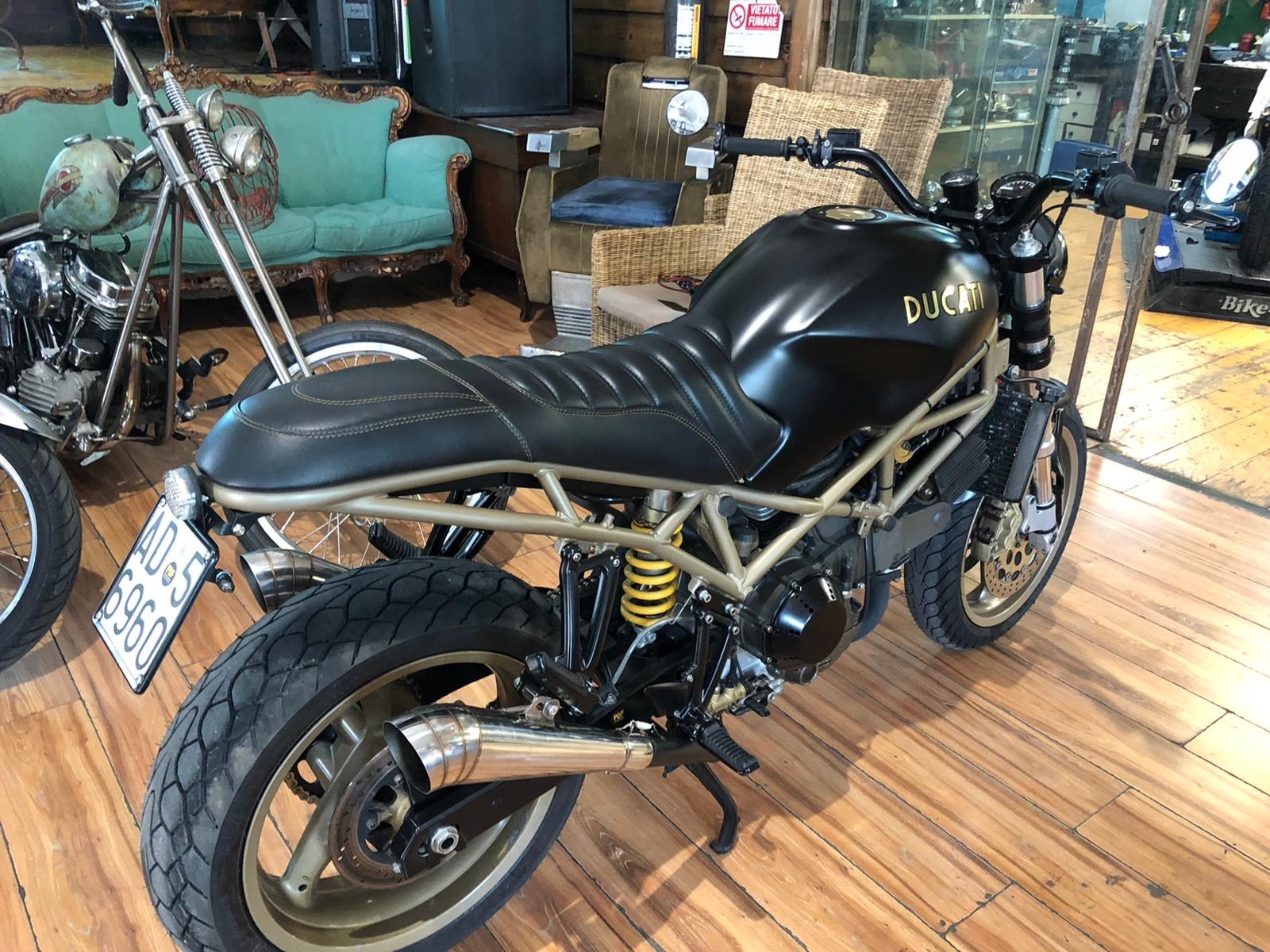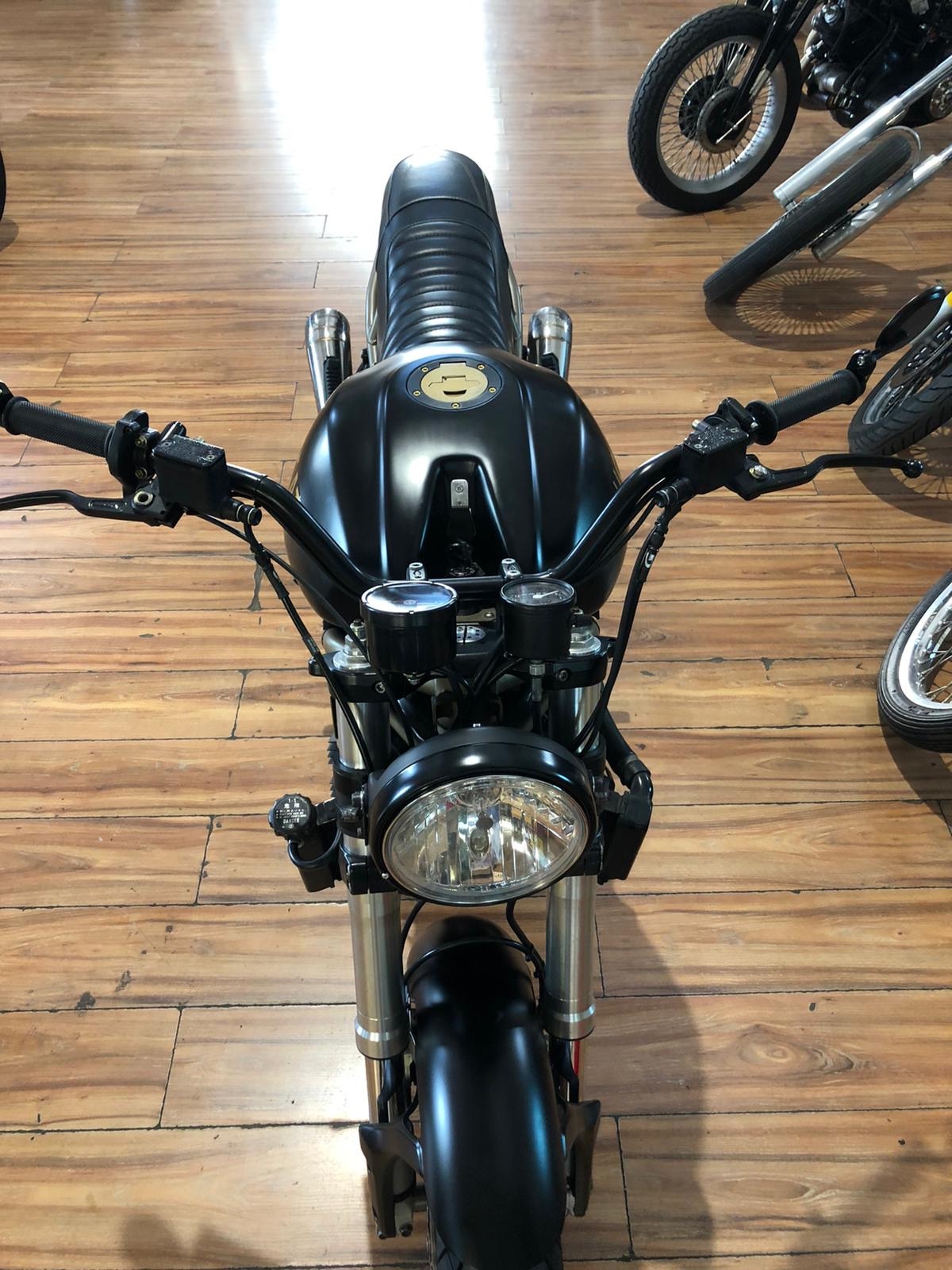 Aangepaste handgemaakte lederen zadel, complete wijziging van de bovenbouw, verlichting, handgemaakte uitlaten, handgemaakte tank, gepoedercoat frame, ohlins vering, richtingaanwijzers, koplampen, instrumenten, stuur ... alle gehomologeerd, reed gereviseerd, 0 km banden