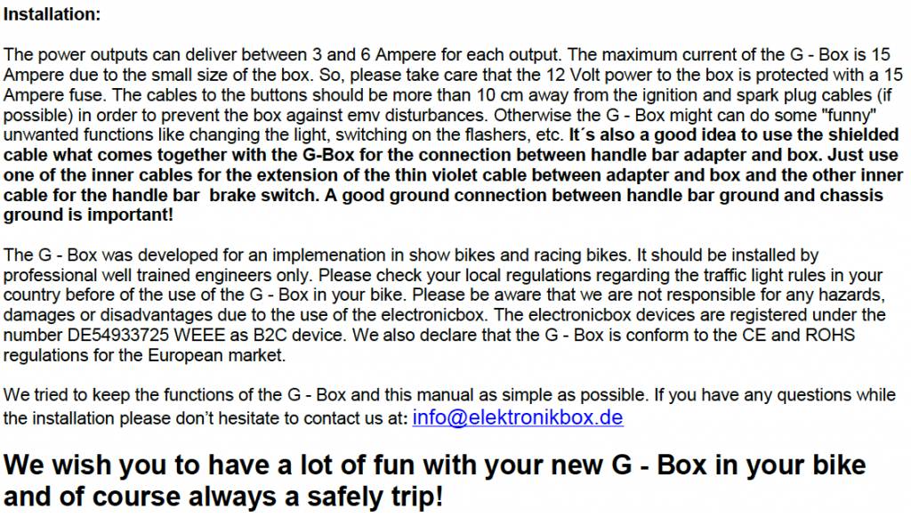 De G-Box is verkrijgbaar met 1(G) of 2(G2) stuur adapters. Het systeem stuurt de meest voorkomende elektronica aan in uw motor, de G-Box beschikt over de volgende mogelijkheden: