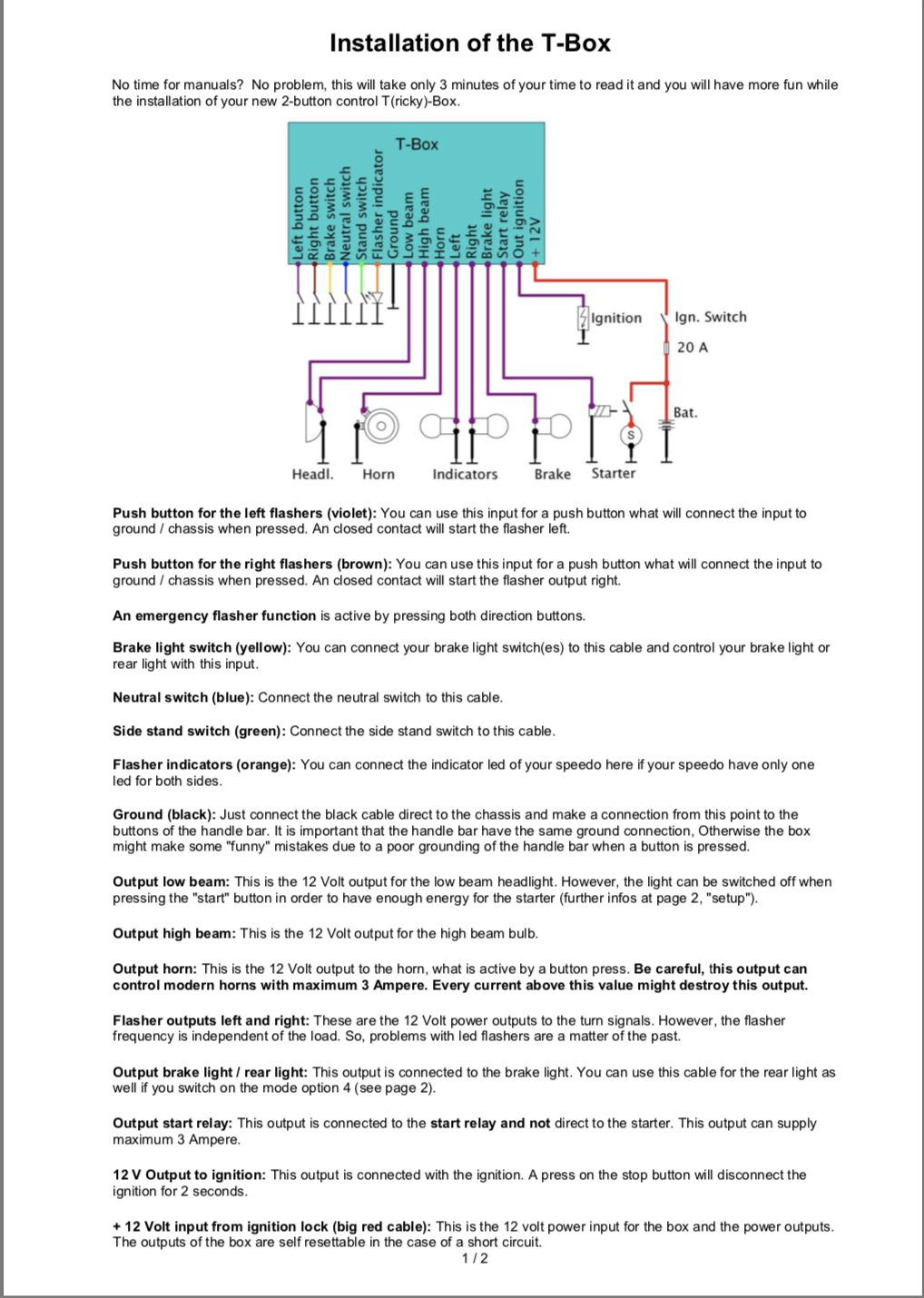 We hebben lang nagedacht over hoe een bedieningsmodule voor alle belangrijke functies op de motorfiets intuïtief bediend kan worden met slechts 2 knoppen, zonder ingewikkelde toetscombinaties te hoeven leren. Het resultaat is deze ingenieus eenvoudige oplossing. De T-Box ("T" staat voor tricky) regelt de volgende functies: