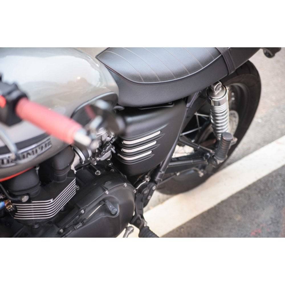 Motone aangepaste geribde zijpanelen voor de luchtgekoelde Triumph Twins - ze passen op alle Hinckley Bonnies 2001-2015