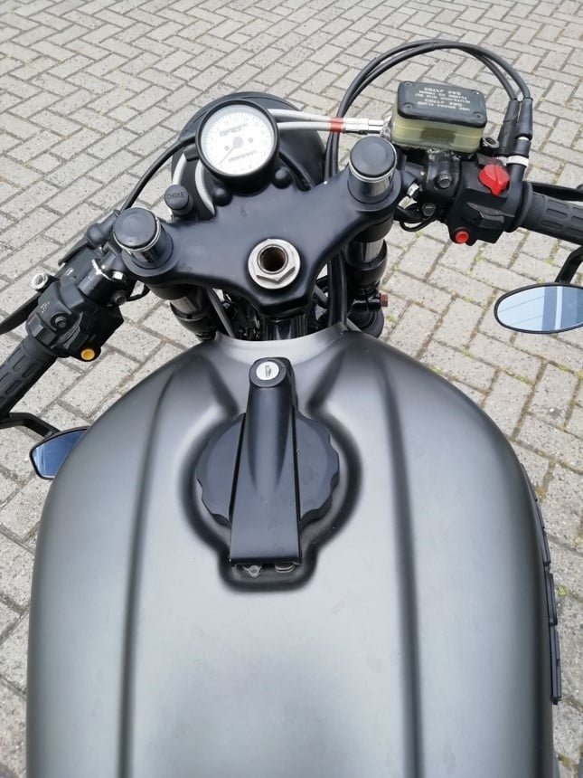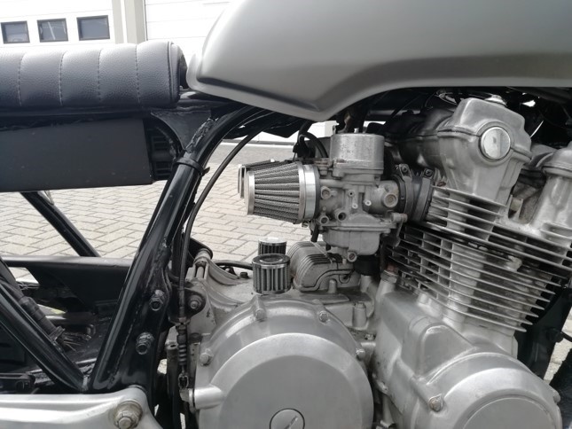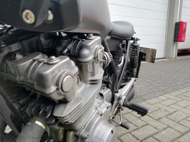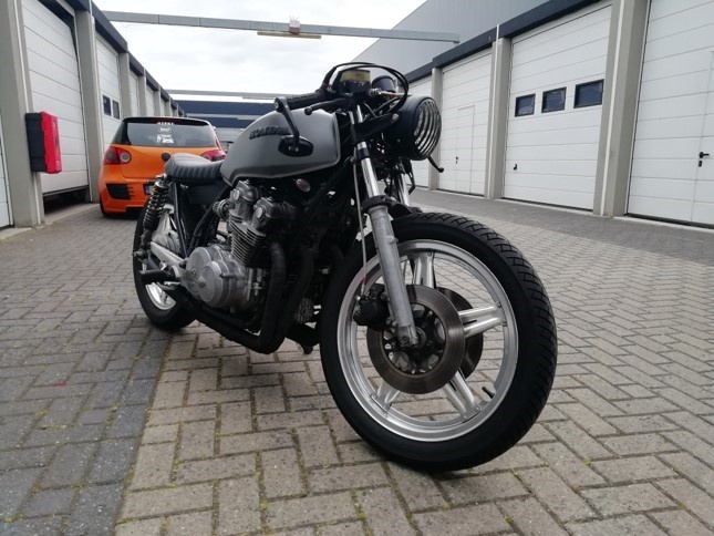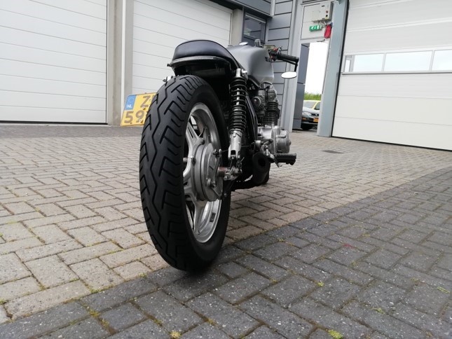 Deze motor is omgebouwd tot een caferacer.