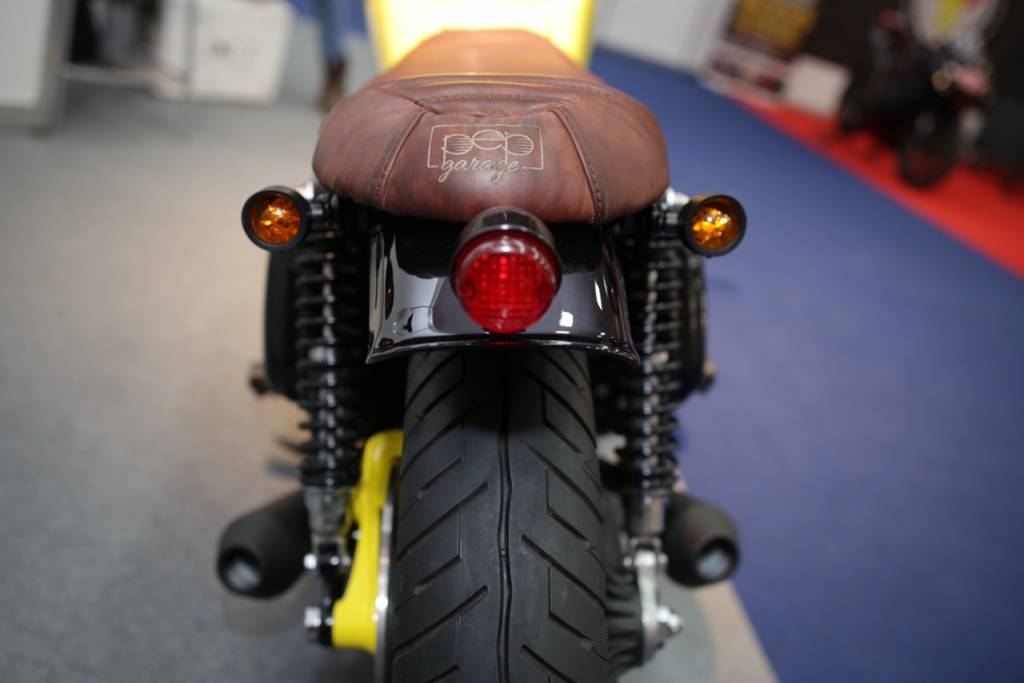 Deze unieke Honda Goldwing GL1000 Custom Café Racer werd gebouwd in drie maanden. Het plan was om de originele gele Goldwing uit 1976 te transformeren in een wendbare maar krachtige Café Racer. Het resultaat is een sterke mix van een nieuwe en sportieve look met behoud van de hoofdvorm en het gele 'hart'.