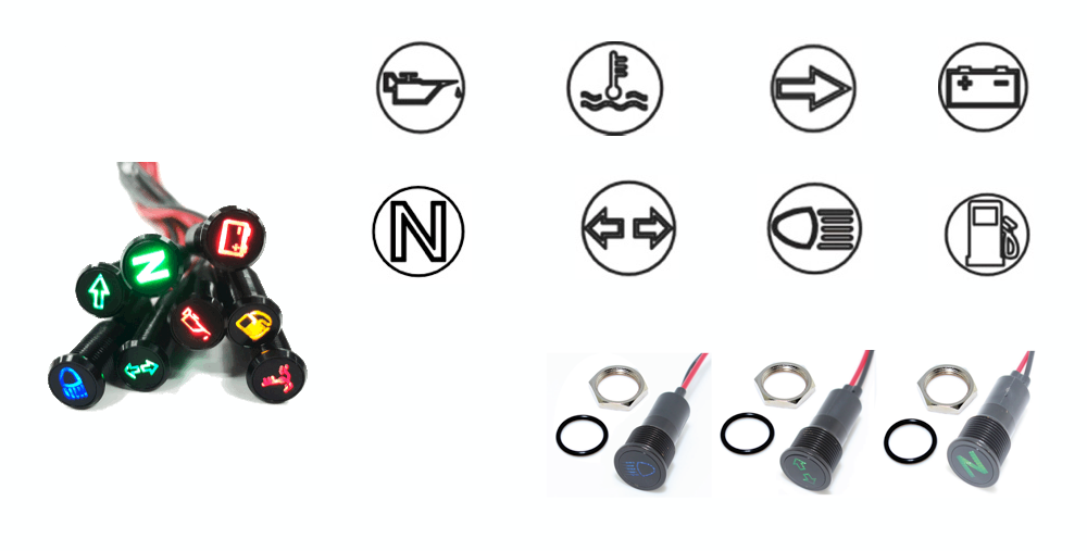 Indicatorlicht in mooie zwarte aluminium behuizing. Perfect voor het maken van custom dashboard voor uw Cafe-Racer.
