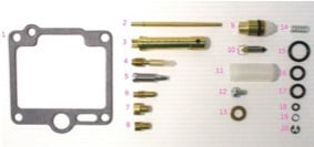 Let op: de set is geschikt voor 1 carburateur en de foto's zijn indicatief. Vaak bevat een set 8 - 10 onderdelen.