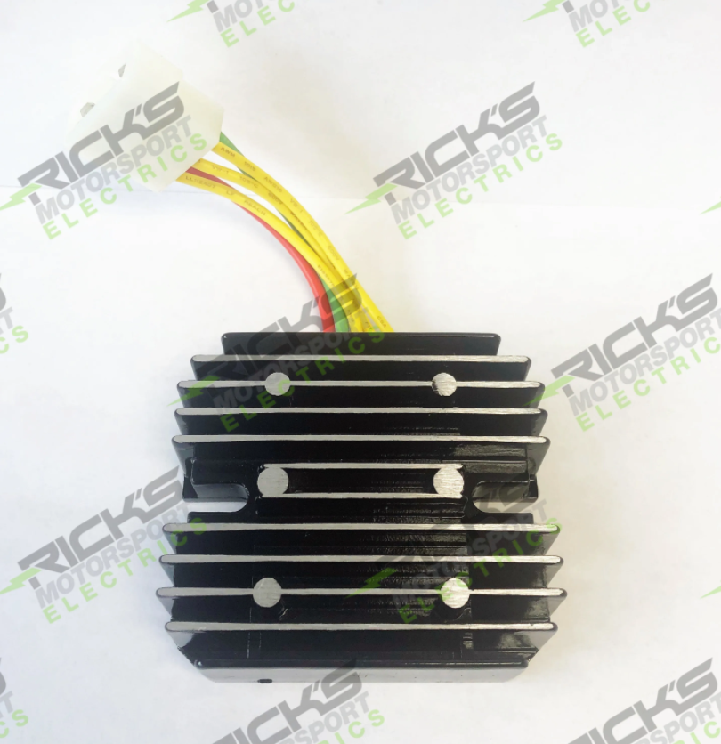 Rick's Motorsport Electrics onderdeel # 14-301 is een Lithium Ion Batterij Compatibele Gelijkrichter Regulator. Onze Aftermarket Kawasaki Gelijkrichterregelaar vervangt de OE# 21066-1101 en 21066-1055. *Rick's ontwerp ziet er iets anders uit dan de originele apparatuur: het zal een korte 3" harnasgordel hebben met de OEM-stekker in bijlage voor een eenvoudige installatie.