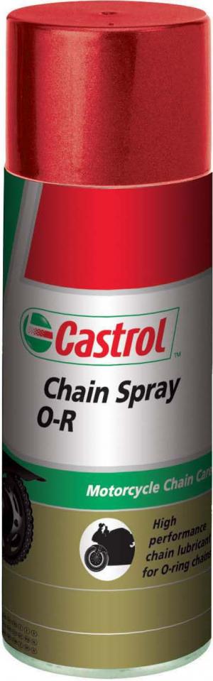 Castrol Chain Spray O-R is een wit, volsynthetische kettingspray voor bromfiets en motorfiets kettingen met en zonder O-ring en X-ring.