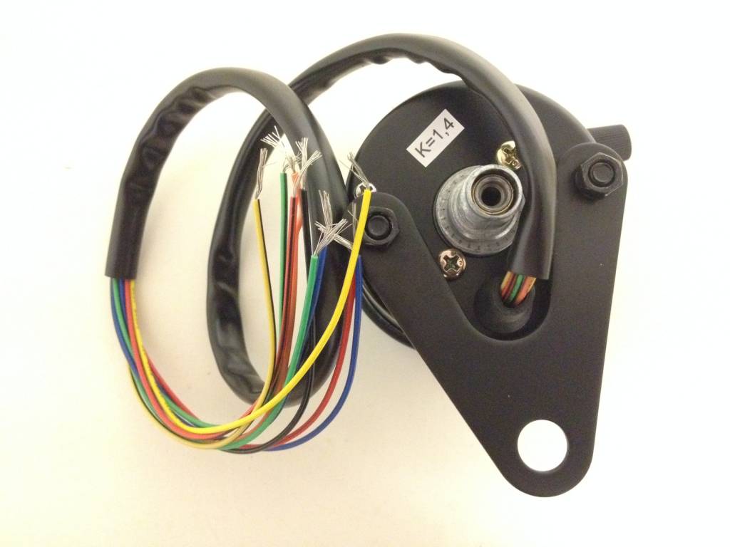 Het aantal omwentelingen van de km.tellerkabel kun je zo vaststellen: haal de kmtellerkabel los van de kmteller. Doe een paperclip op de vierkante binnenkabel en draai het wiel precies 10 keer rond (even aantekenen op de band).
