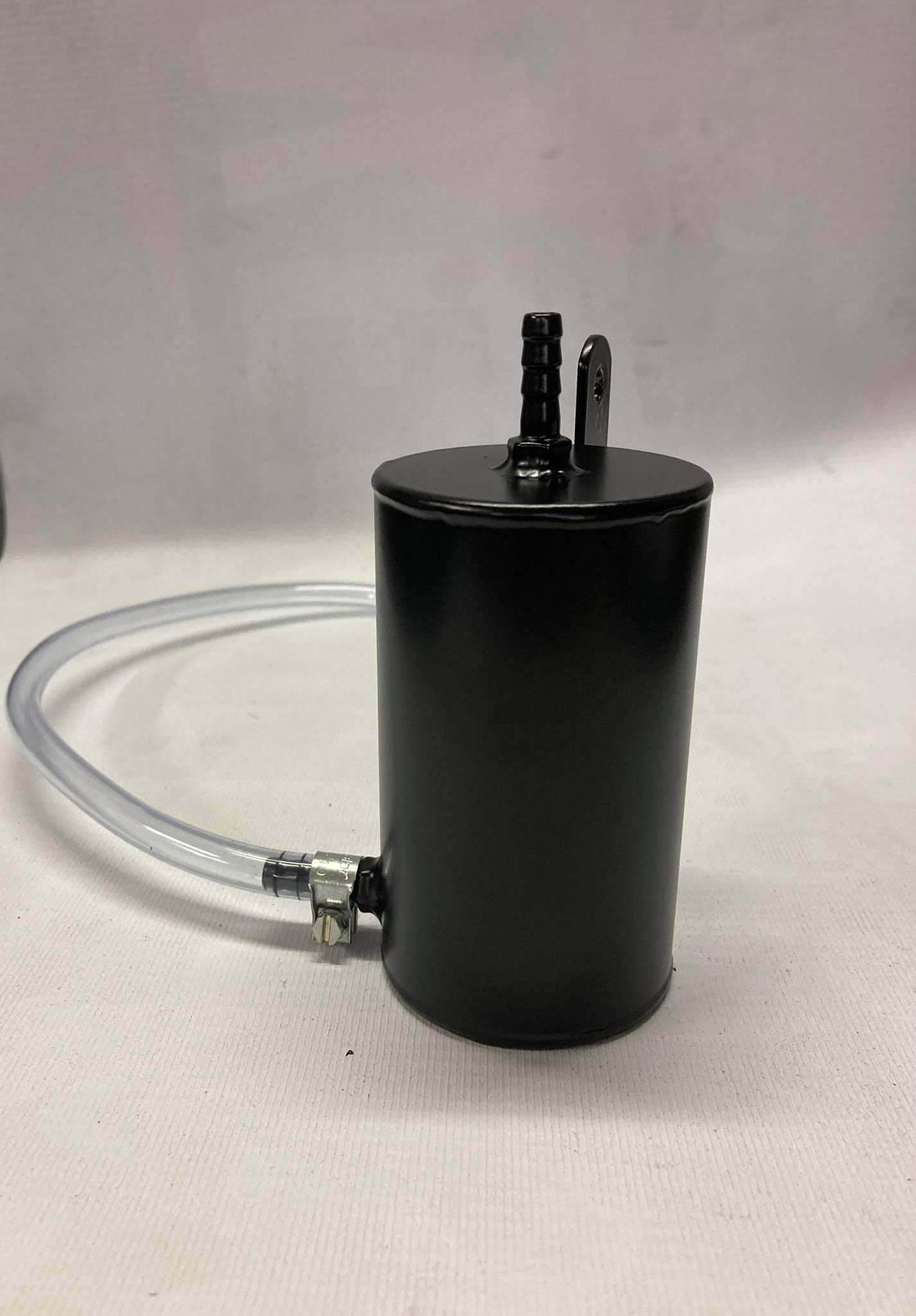 Koelvloeistofvat voor BMW K100 en K1100.volledig gemaakt in RVS en getiglast en daarna gepoederlakt in RAL9005.Deze monteren op de voorste framebuis aan de rechterkant waar origineel de steun gebout zit van de kopkuip. Voor modellen die af fabriek geen kuip hadden gemonteerd kan de versie voor de K75 ook gebruikt worden.bouten voor montage worden bijgeleverd, net als een verbindingsslang tussen het vatje en de radiatordop.Het tankje heeft een maximum inhoud van 280ml maar wordt best maar voor de helft gevuld. Dankzij de doorzichtige verbindingsslang kan je de inhoud van de tank controleren.De overloop bovenop kan je het originele slangetje op monteren en naar de onderkant van het blok laten lopen.