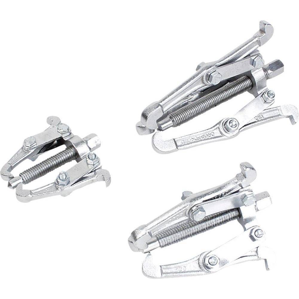 De set bestaat uit een 2-armige poelietrekkers met een spandiepte van 75 mm, voor de fijne klus, Een 3-armige poelietrekker met een spandiepte van 100 mm en een 3-armige poelietrekker van 150 mm, voor de stevige klussen! Met deze set heeft u dus direct de goede poelietrekkers.Deze set is een goede aanvulling voor elke werkplaats of garage!